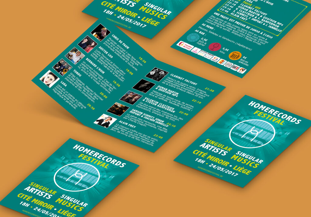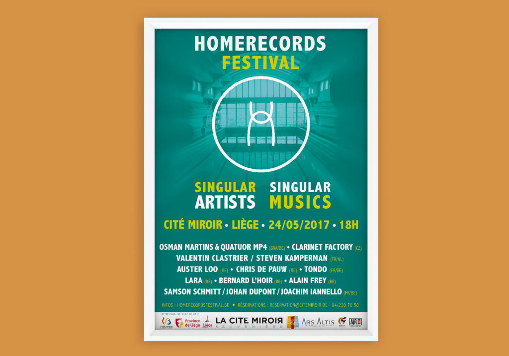 Depuis 2016, homerecords.be organise son festival dans un lieu aussi singulier que ses artistes. Pour la deuxième édition c’est tout simplement le lieu que l’équipe souhaitait mettre en valeur sur le visuel. Une ancienne piscine ; aujourd’hui musée et salle de conférence. Je me suis chargée de l’identité visuelle, de la création du site internet et de la promotion de manière globale mais également des prises de vues et montage vidéos (teaser, interviews des artistes, aftermovie).